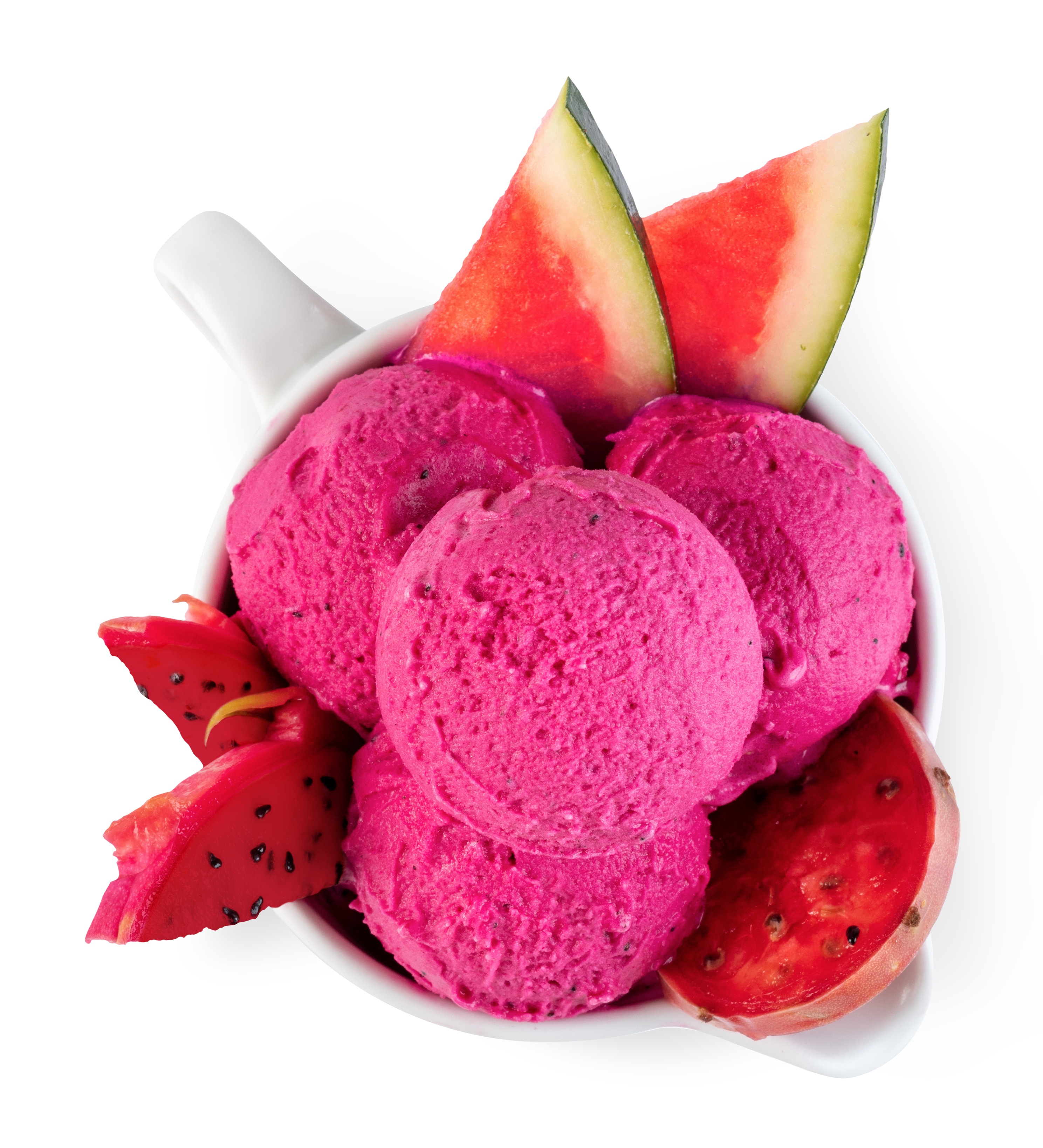 Mix pyré z dračího ovoce, šťávy z vodního melounu a pyré z opuncie, 84 % ovoce.